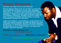 Gemeinsam mit dir verbringen wir ein tolles Gospelwochenende voller mitreißender Musik, netter Begegnungen und berührender Lieder. Highlight des Wochenendes wird ein tolles selbstgestaltetes Abschlusskonzert sein zu dem du Freunde und Familie einladen kannst!